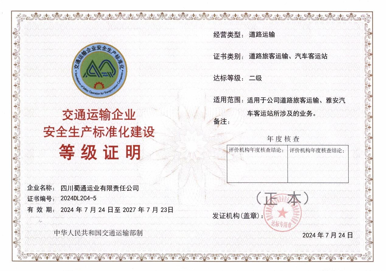 近日,经四川省交通运输企业安全生产标准化评价机构综合评定,米兰体育-米兰(中国)官网