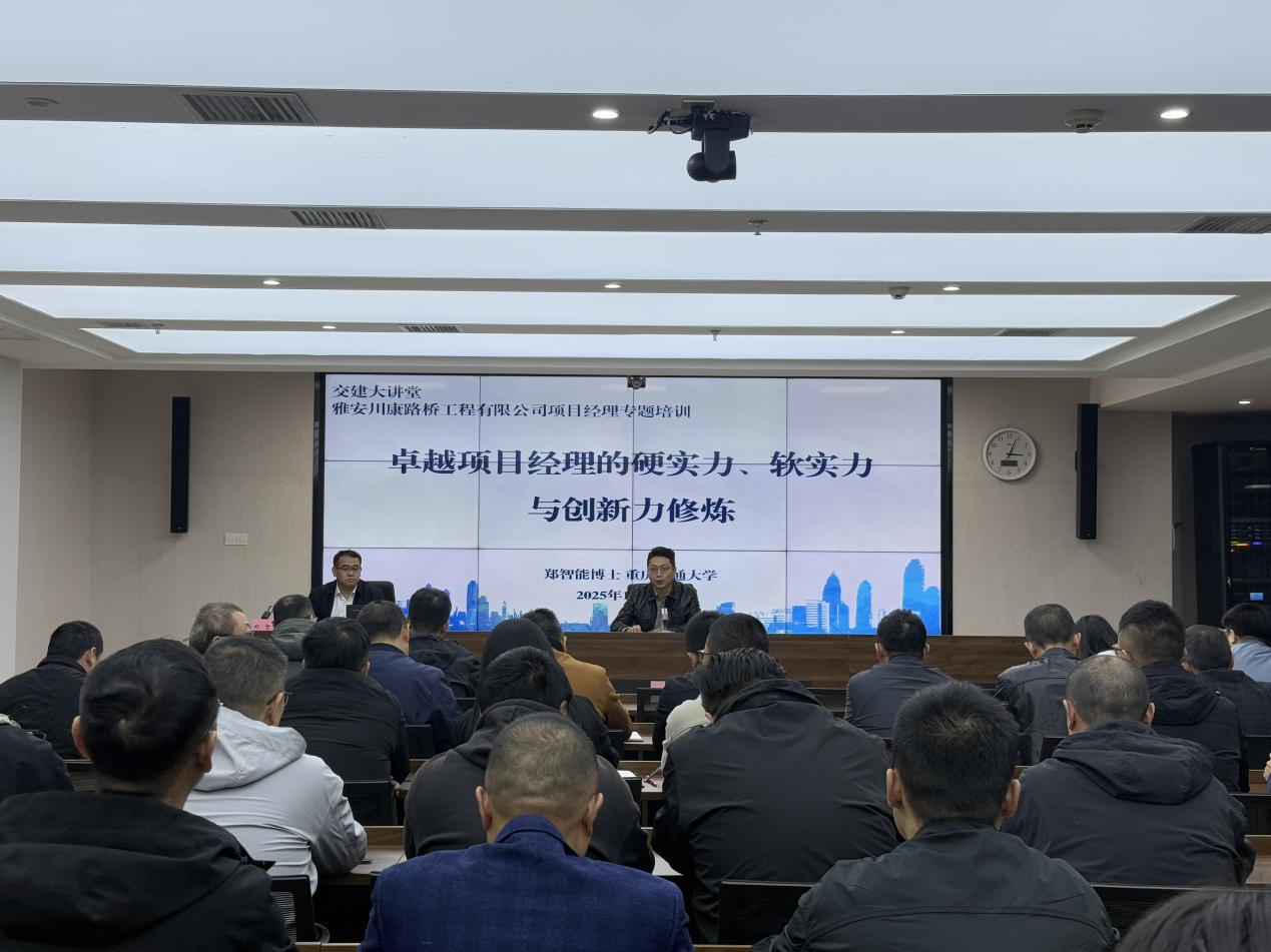 本次培训特邀重庆交大工学博士、副教授、硕士生导师郑智能老师,以“优秀项目经理的硬实力、软实力与创新力修炼”为主题,聚焦行业前沿动态与实战应用,旨在帮助项目经理拓宽管理视野、夯实核心技能,为公司转型升级和经营目标的顺利实现提供有力的人才支撑。