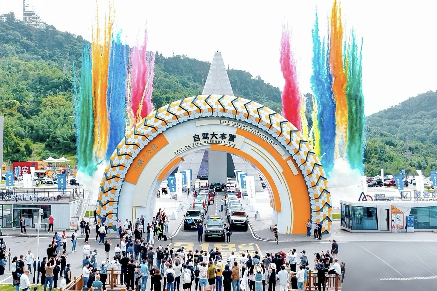 活动开始,嘉宾参观了318公路文化体验馆,深入了解318国道文化。随后召开2025四川省旅游租赁行业推介会,发布“百万路书计划”“悦野中国”IP及318路线专属服务保障政策,并宣布成立BJ40增程俱乐部,为越野爱好者提供全方位支持。发车仪式上,北汽集团领导与车主代表共同授旗,在彩烟腾空、车队齐鸣中,100余台BJ系列越野车分列两队驶出拱门,正式开启为期8天的川藏之旅。