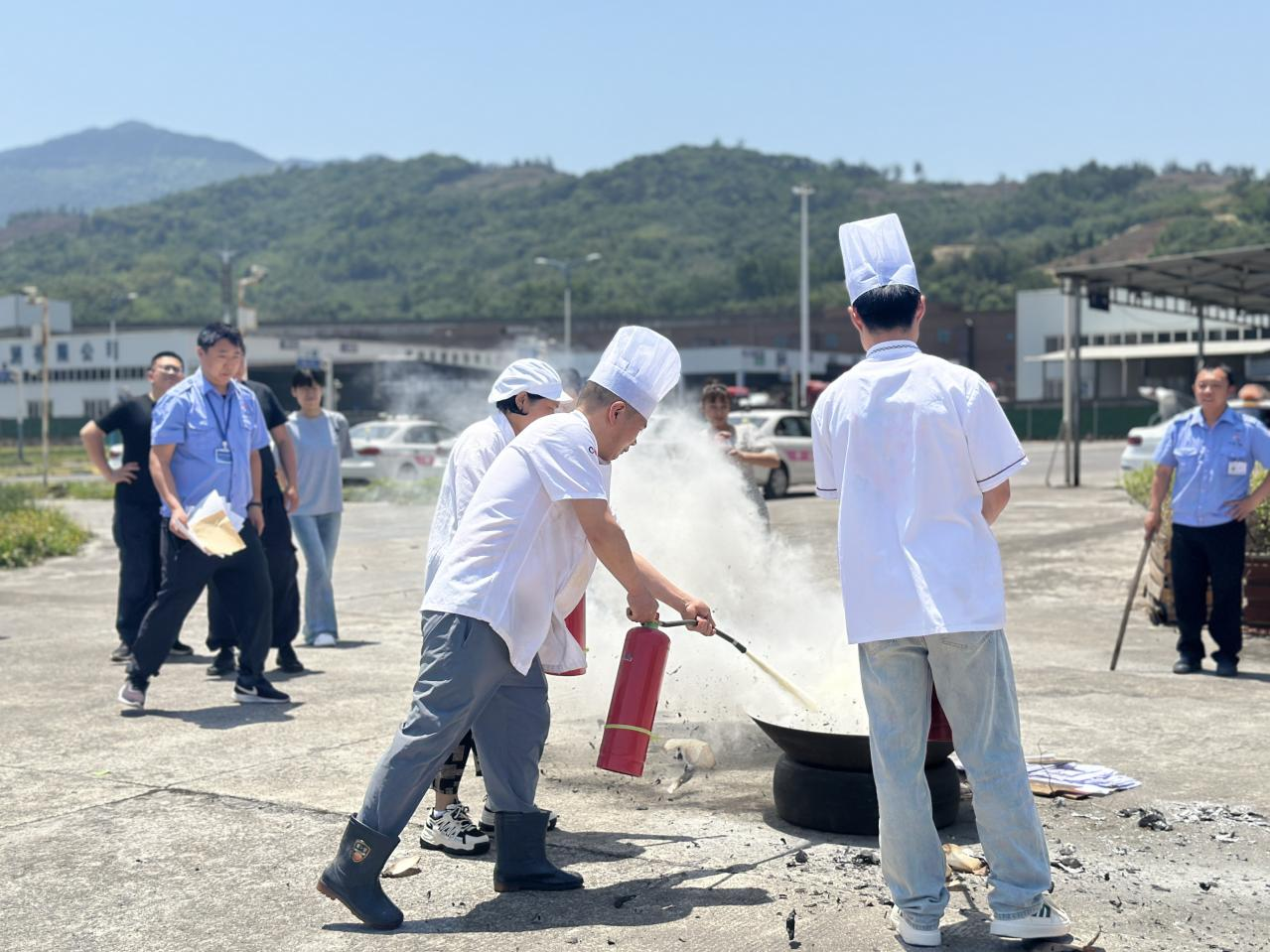 正式演练前,公司副总经理郑循礼讲述了“防灾减灾日”的由来,传授了防震避难、防火防电、防洪防汛等方面的基本知识,专业人员对消防器材使用方式进行了教学,并组织厨师、安全部重点人员模拟起火现场,“零距离”体验消防护具。随后,开展地震应急演练,在模拟地震的预警信号发出后,全体职工运用学习的避震知识,双手抱头、蜷缩身体、降低重心,快速有序撤离室内到达户外安全区域。