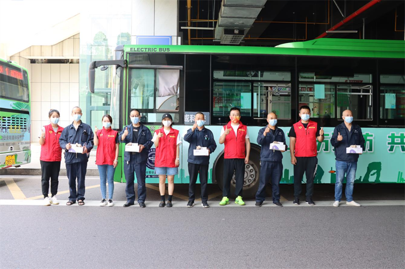 最后,青年团员们带着亲手制作的40份防疫香囊、藿香正气液、口罩等防疫消暑慰问品,来到市区内的各个公交车站点开展了志愿者服务活动。团员志愿者们亲手为公交驾驶员师傅送上了慰问物质,关切询问他们的作息时间、身体状况等,并感谢他们为城市发展和群众出行付出的辛苦劳动,同时叮嘱大家在高温季节一定要注意劳逸结合,做好防疫和防暑措施。