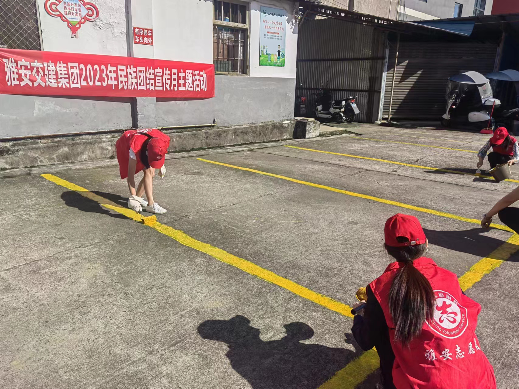 活动现场分宣传讲解、上门服务、卫生清洁、停车场油漆添补4个小组。通过发放宣传资料、现场答疑解惑、卫生死角清扫、停车线添补等活动,向小区住户、街道过往市民、车站乘客等群众宣传民族团结示范市创建工作相关问题和民族团结相关知识,进一步提升群众对民族团结进步的认识,激发居民促进共同繁荣发展的主动意识,携手推进民族团结进步创建,助力雅安市创建民族团结进步示范市工作。