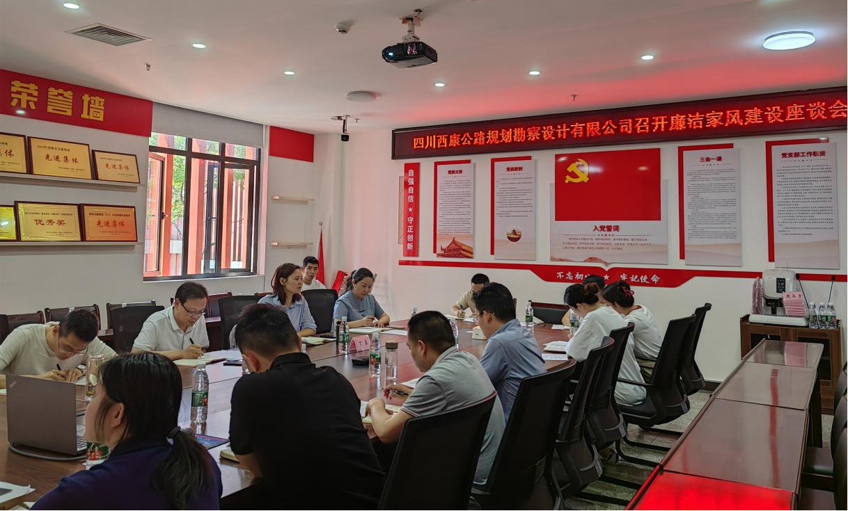 西康设计公司召开廉洁家风建设座谈会,公司党支部书记、执行董事何铭新主持会议,特别邀请交建集团党委委员、副总经理丁春出席会议并作重要讲话,公司班子成员及家属、中层干部及家属采用线上与线下相结合的方式参加会议。