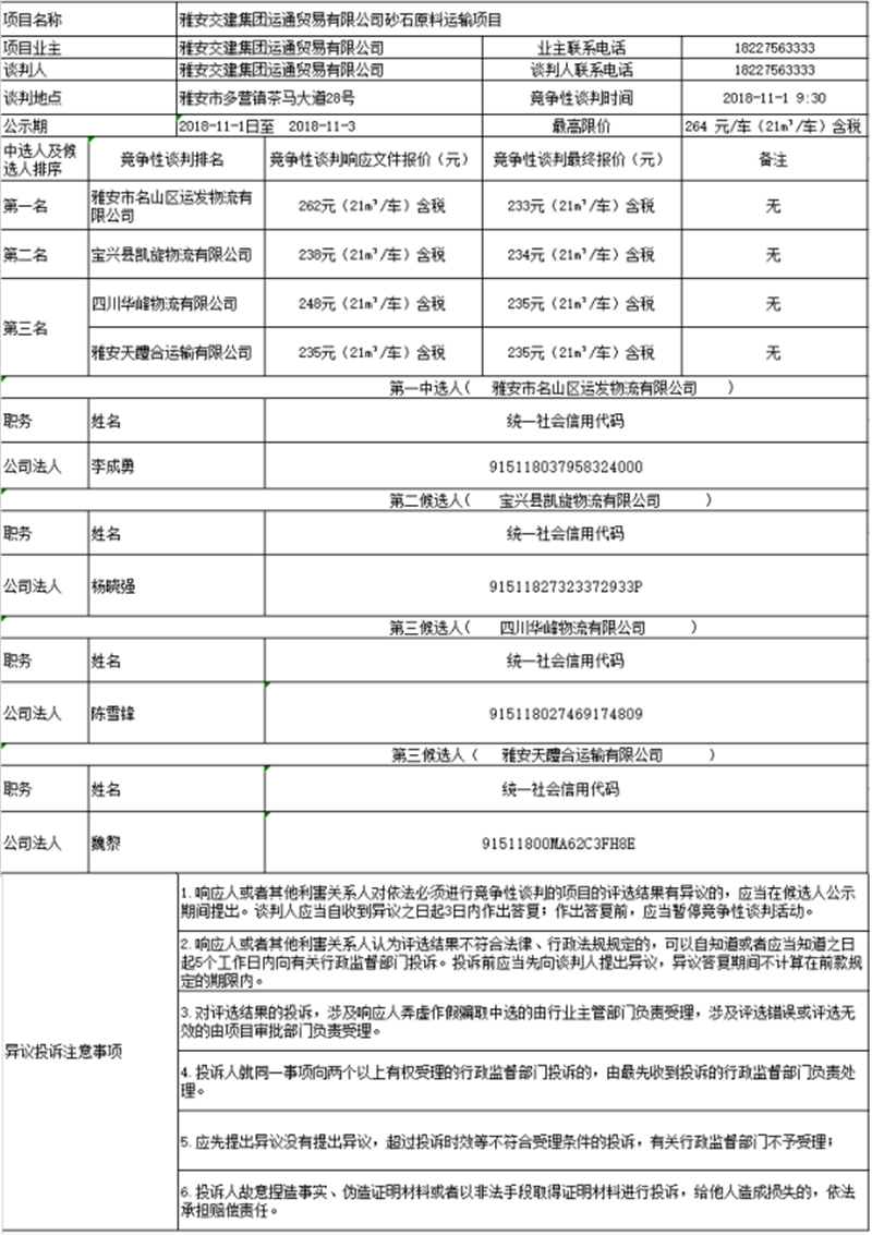 米兰体育-米兰(中国)官网 运通贸易有限公司砂石原料运输项目竞争性谈判中选人及候选人公示