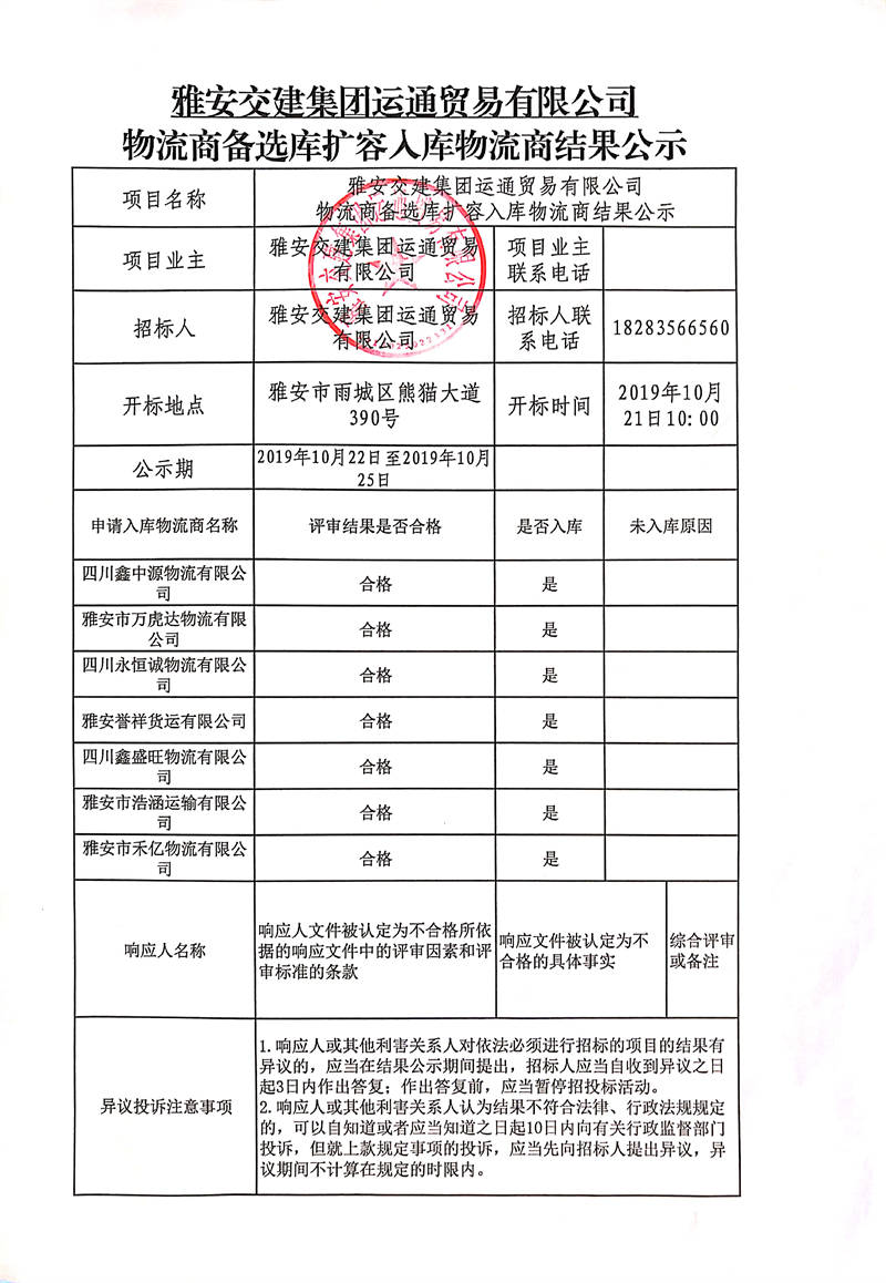 米兰体育-米兰(中国)官网 运通贸易有限公司物流商备选库扩容入库物流商结果公示