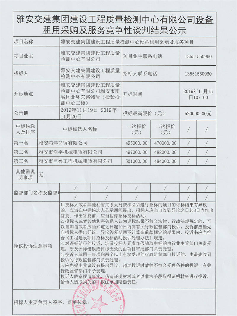 米兰体育-米兰(中国)官网 建设工程质量检测中心有限公司设备租用采购及服务竞争性谈判结果公示