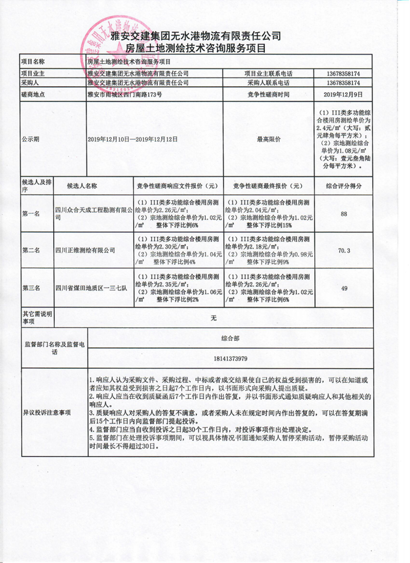 米兰体育-米兰(中国)官网 无水港物流有限责任公司房屋土地测绘技术咨询服务项目竞争性磋商结果公示