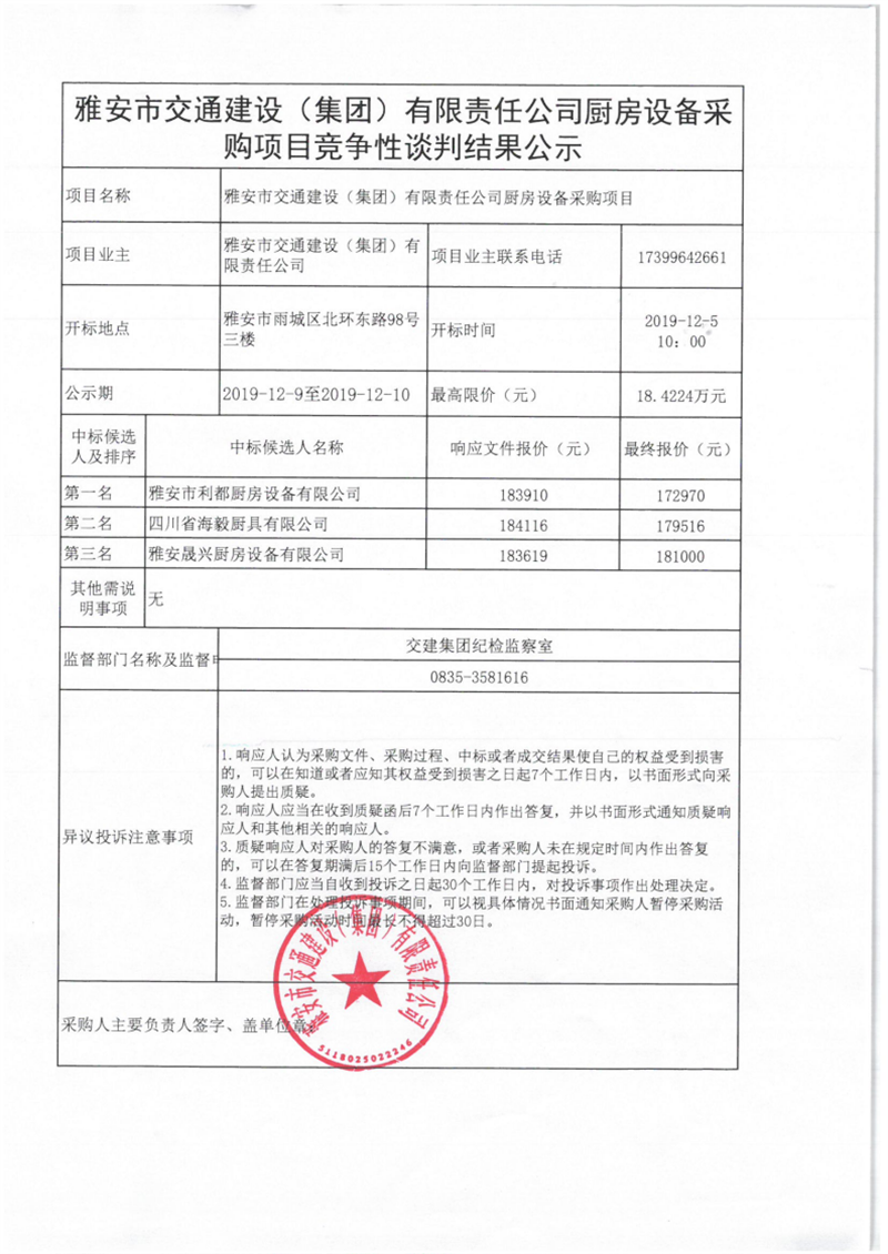 米兰体育-米兰(中国)官网 厨房设备采购项目竞争性谈判结果公示