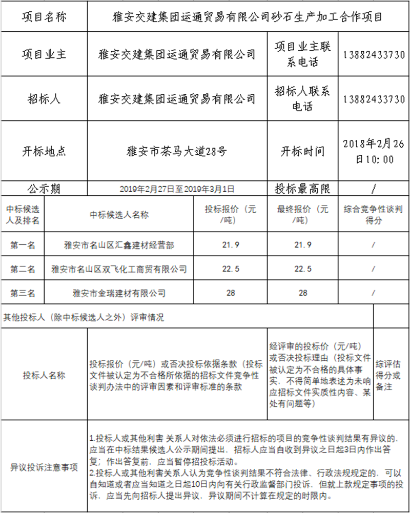 米兰体育-米兰(中国)官网 运通贸易有限公司砂石生产加工合作项目竞争性谈判结果公示