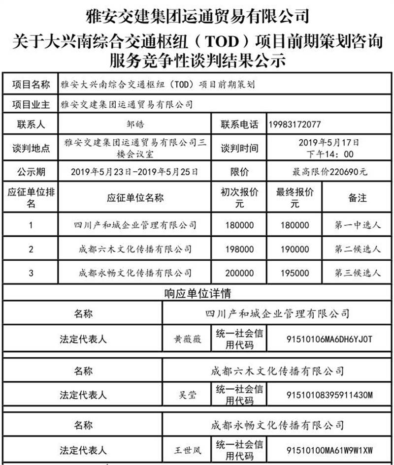 米兰体育-米兰(中国)官网 运通贸易有限公司关于大兴南综合枢纽(TOD)项目前期策划咨询服务竞争性谈判结果公司