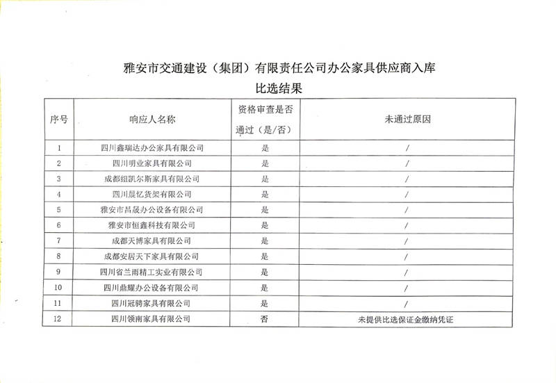 米兰体育-米兰(中国)官网 办公家具供应商入库比选结果