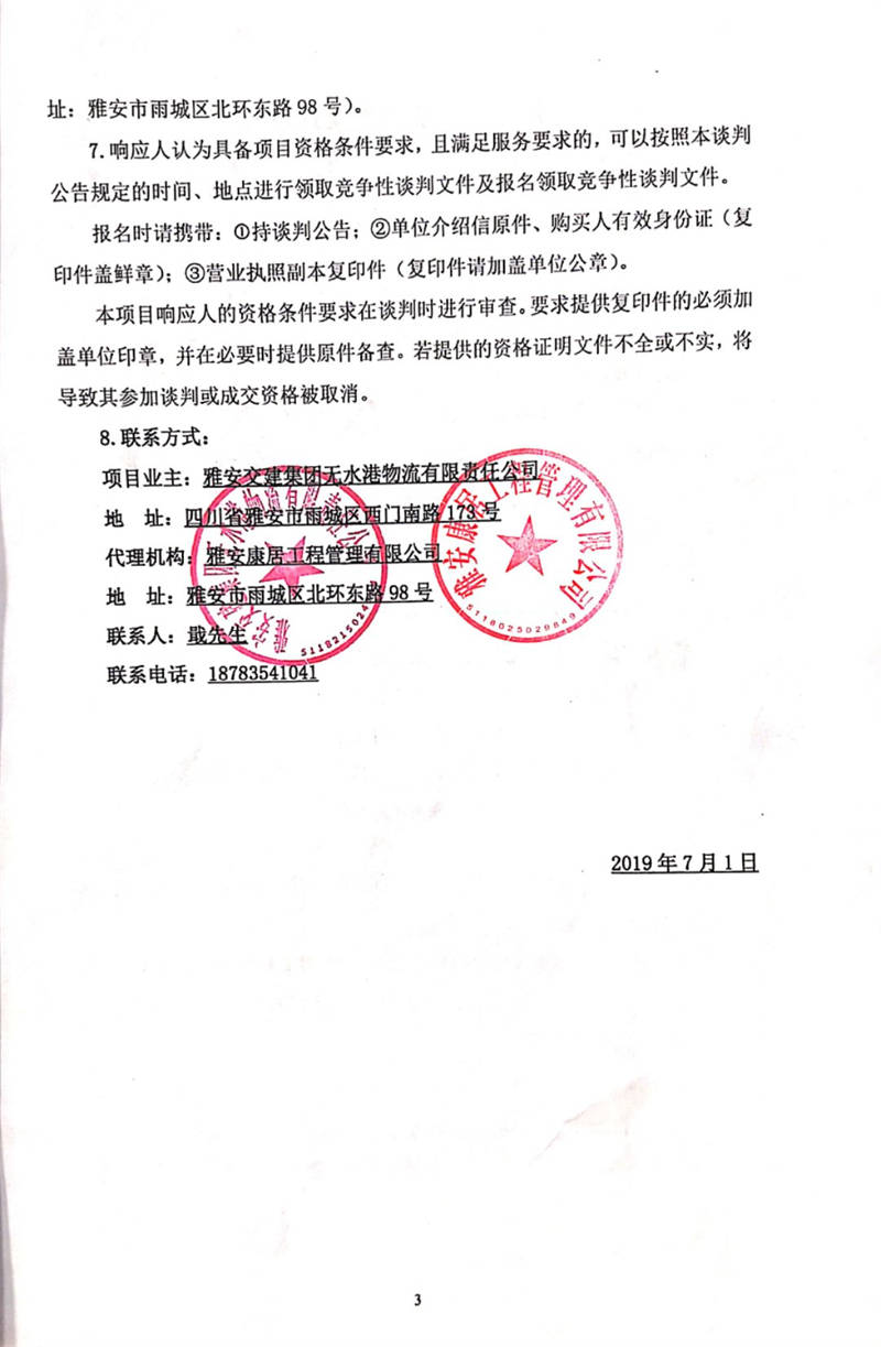 米兰体育-米兰(中国)官网 无水港物流有限责任公司雅安市无水港建设项目(一期)场平工程监理竞争性谈判公告