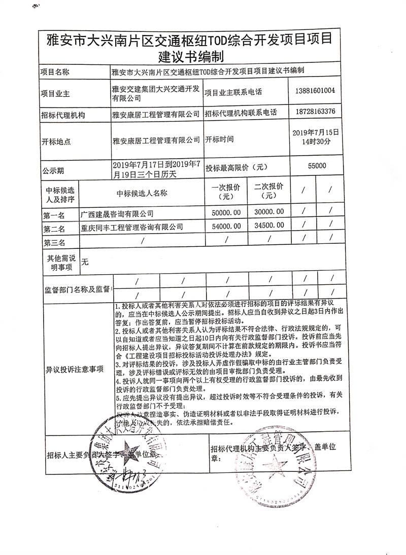 米兰体育-米兰(中国)官网 大兴交通开发有限公司雅安市大兴南片区交通枢纽TOD综合开发项目项目建议书编制竞争性谈判结果公示