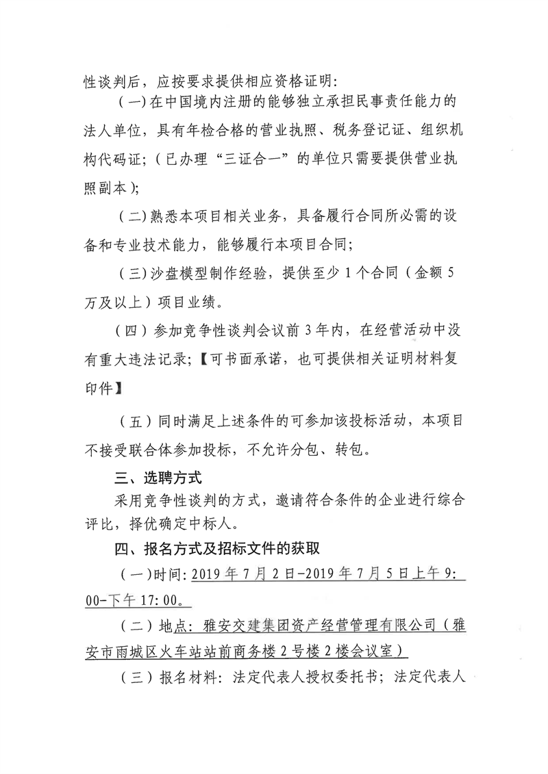 米兰体育-米兰(中国)官网 资产经营管理有限公司成雅高速金鸡关互通及服务区项目(雨名快速通道)沙盘模型制作安装项目竞争性谈判公告
