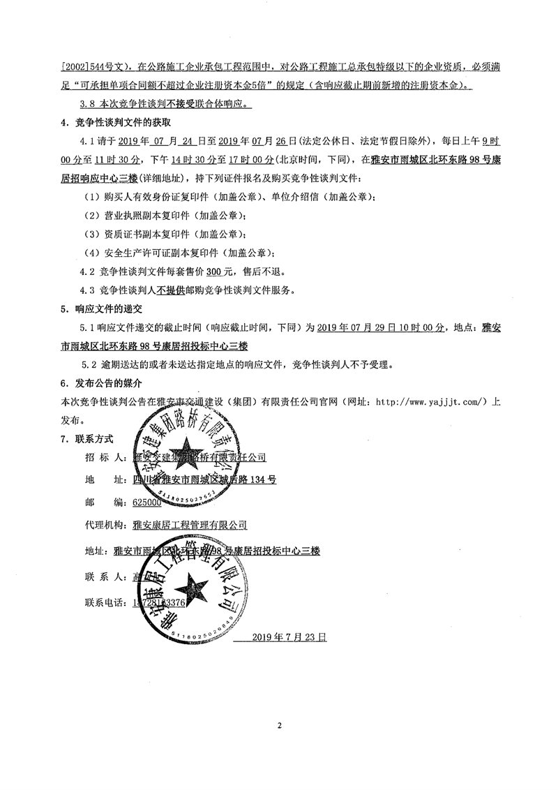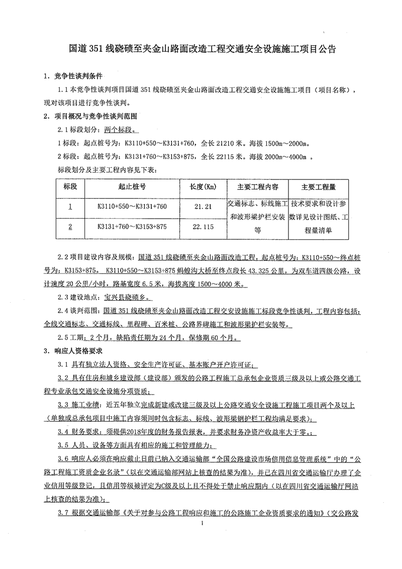 米兰体育-米兰(中国)官网 路桥有限责任公司国道351线硗碛至夹金山段路面改造工程交通安全设施施工项目竞争性谈判公告