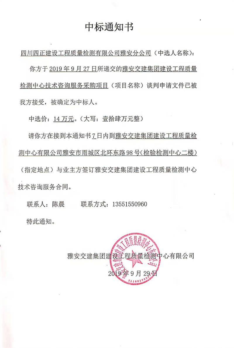 米兰体育-米兰(中国)官网 建设工程质量检测中心技术咨询服务采购项目中标公示
