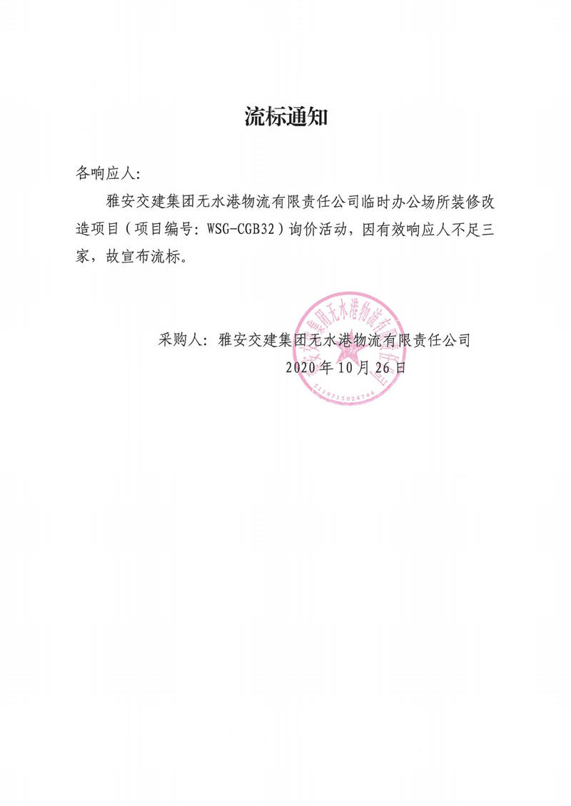 米兰体育-米兰(中国)官网 无水港物流有限责任公司临时办公场所装修改造项目流标通知