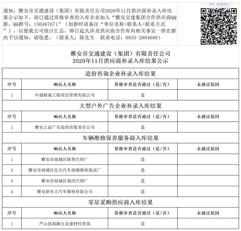 米兰体育-米兰(中国)官网 2020年11月供应商补录入库结果公示