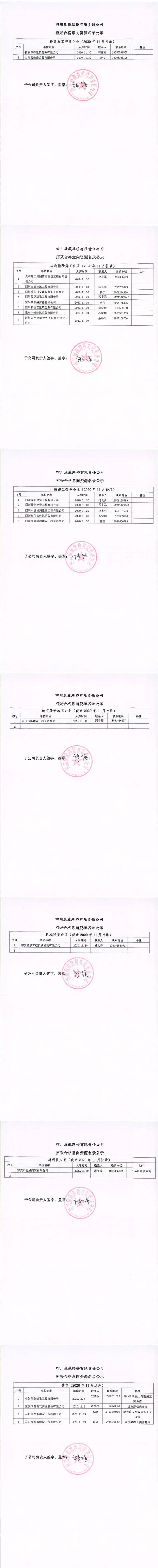 四川康藏路桥有限责任公司招采合格意向资源名录补录公示
