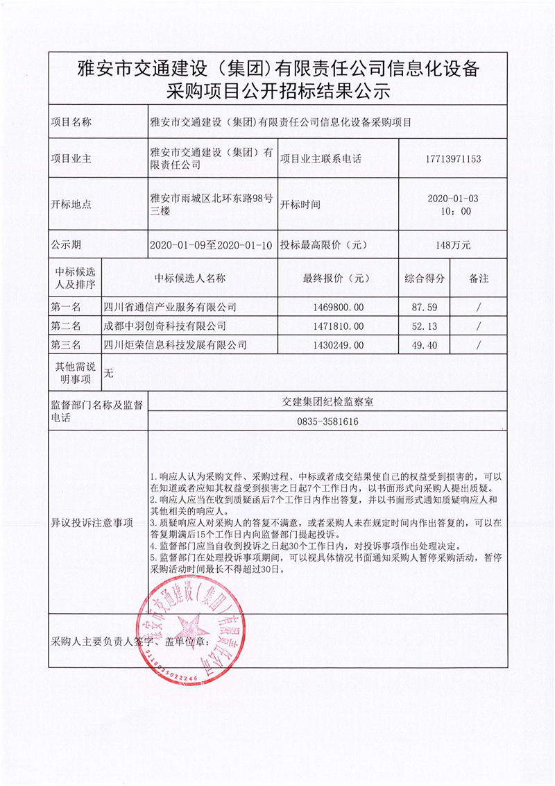 米兰体育-米兰(中国)官网 信息化设备采购项目公开招标结果公示