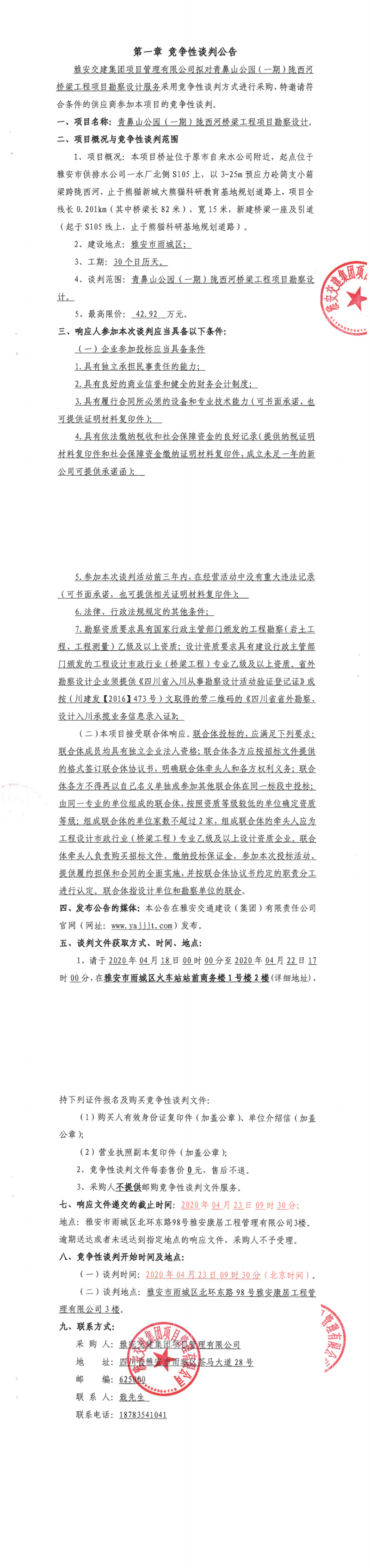 米兰体育-米兰(中国)官网 项目管理有限公司青鼻山公园(一期)陇西河桥梁工程项目勘察设计竞争性谈判公告