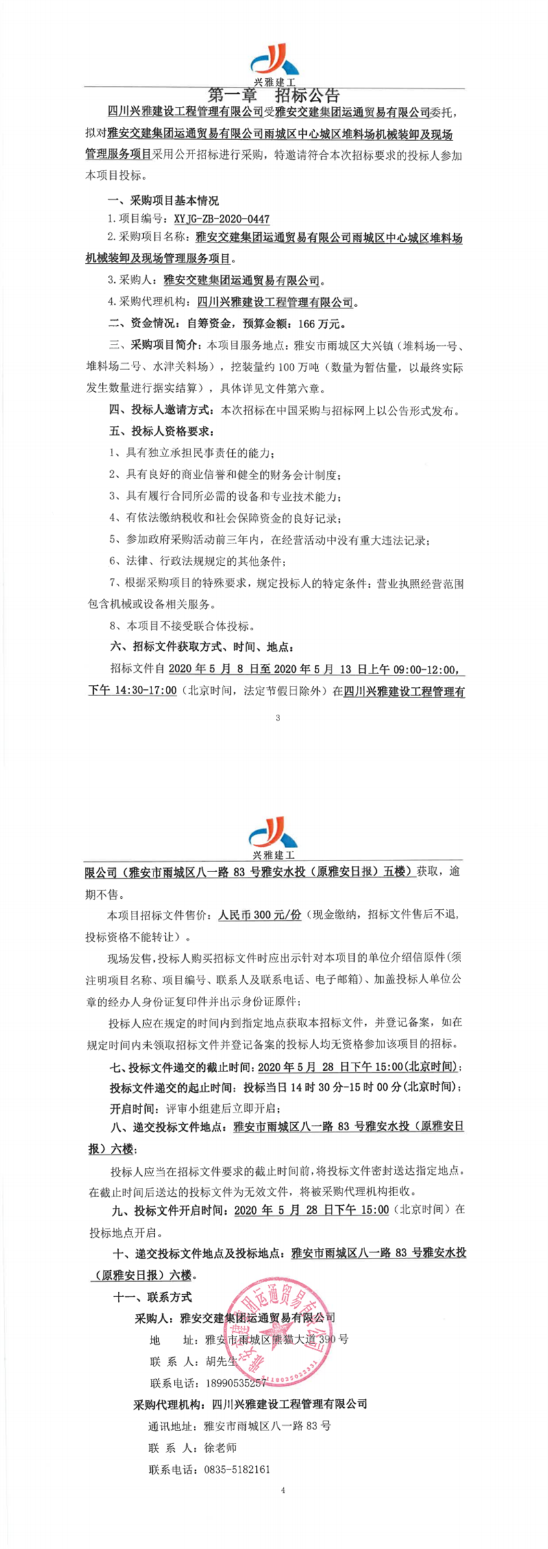米兰体育-米兰(中国)官网 运通贸易有限公司雨城区中心城区堆料场机械装卸及现场管理服务项目招标公告