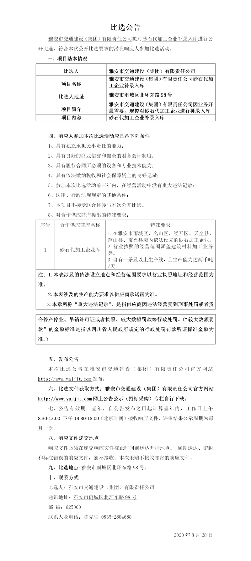 米兰体育-米兰(中国)官网 砂石代加工企业补录入库比选公告