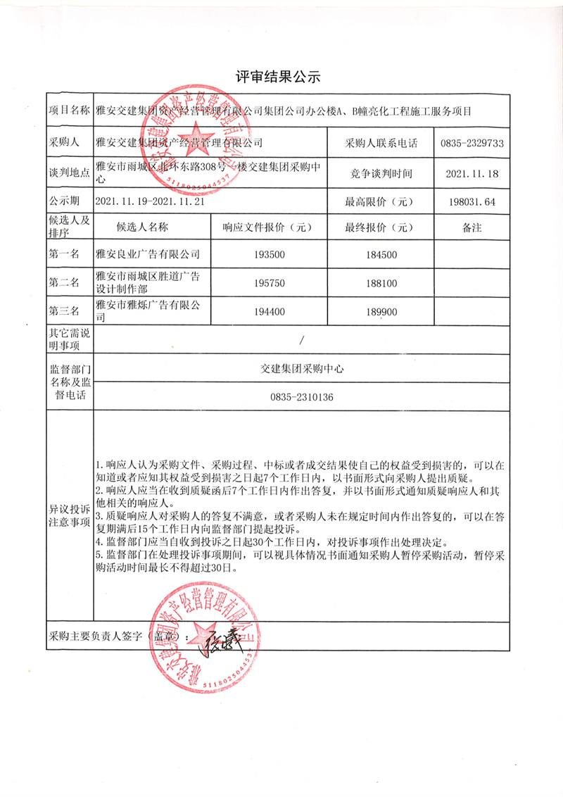 米兰体育-米兰(中国)官网 资产经营管理有限公司集团公司办公楼A、B幢亮化工程施工服务项目评审结果公示