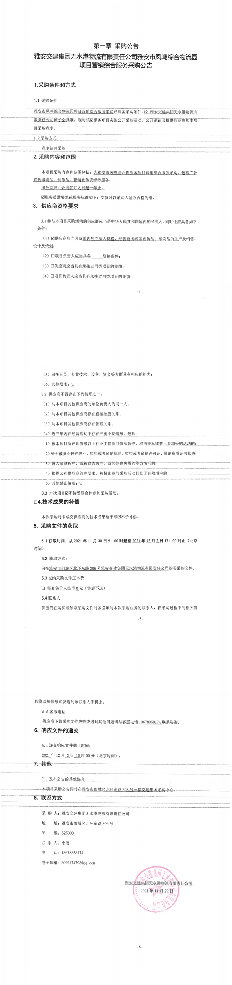 米兰体育-米兰(中国)官网 无水港物流有限责任公司雅安市凤鸣综合物流园项目营销综合服务采购公告