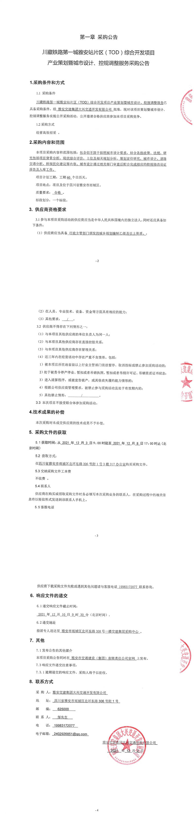 米兰体育-米兰(中国)官网 大兴交通开发有限公司川藏铁路第一城雅安站片区(TOD)综合开发项目产业策划暨城市设计、控规调整服务采购公告