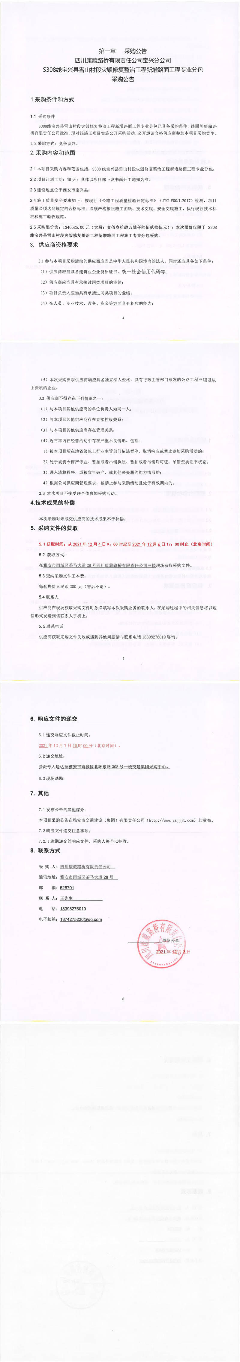 四川康藏路桥有限责任公司S308线宝兴县雪山村段灾毁修复整治工程新增路面工程施工专业分包采购公告