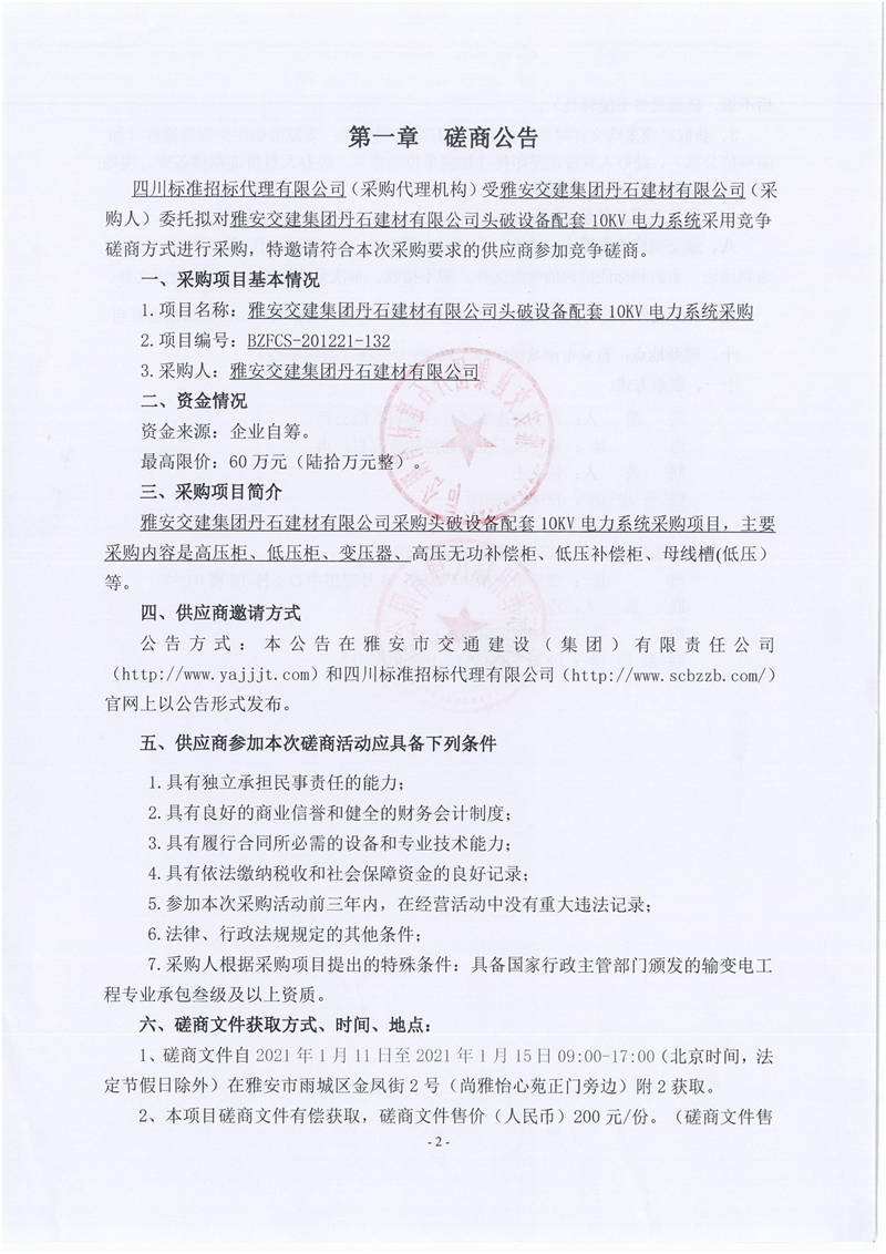 米兰体育-米兰(中国)官网 丹石建材有限公司头破设备配套10KV电力系统竞争磋商公告