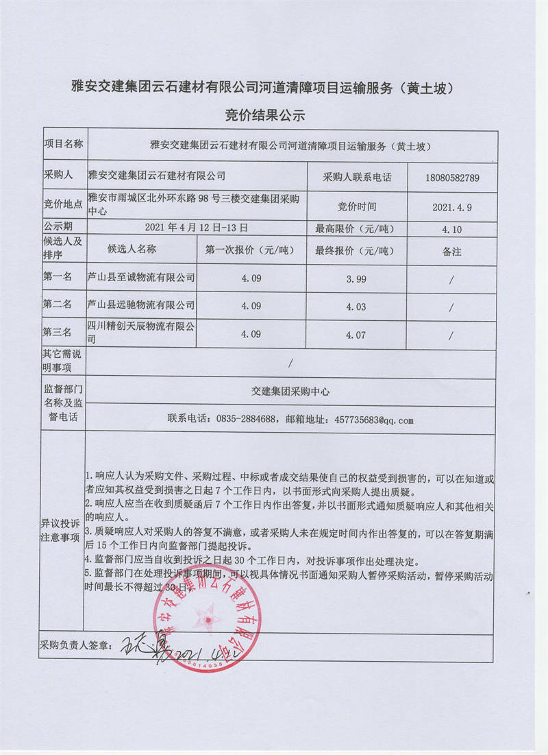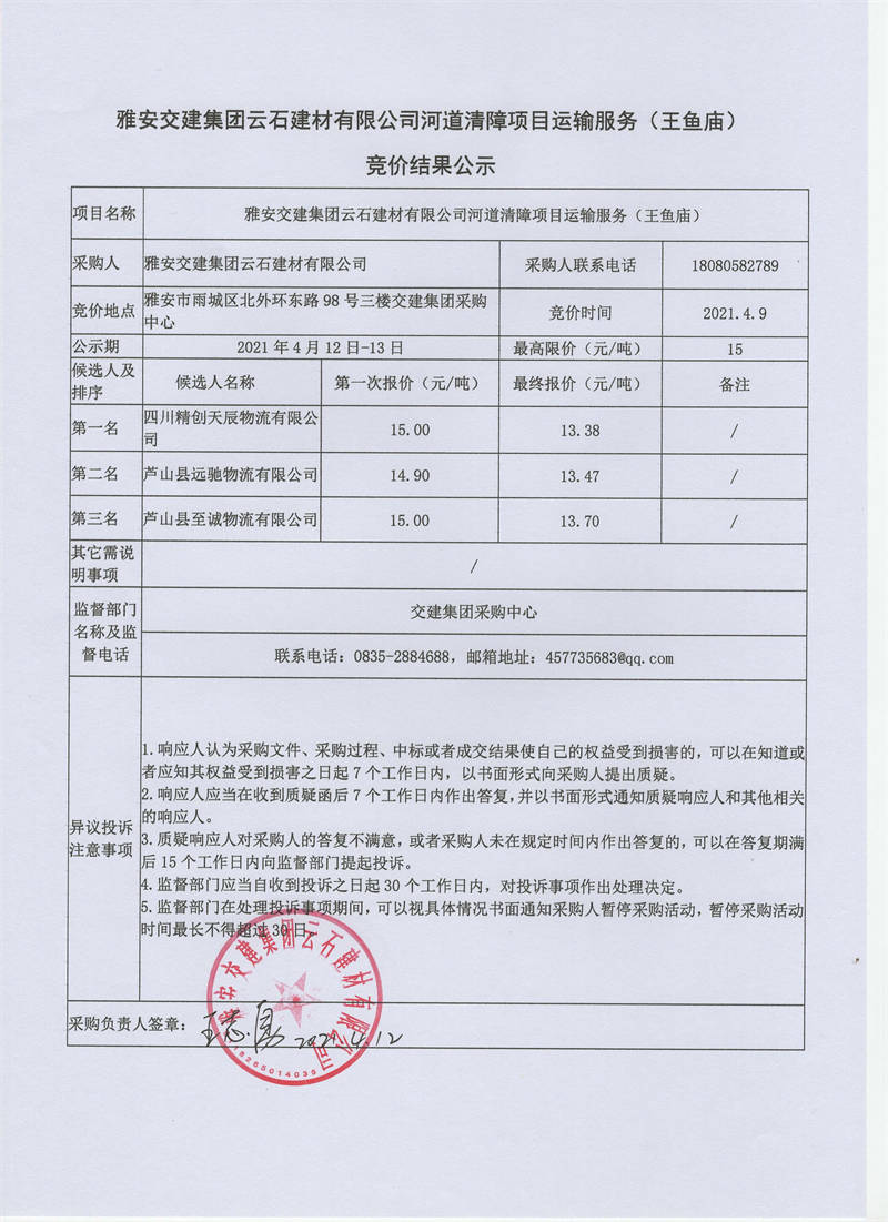 米兰体育-米兰(中国)官网 云石建材有限公司河道清障项目运输服务竞价结果公示