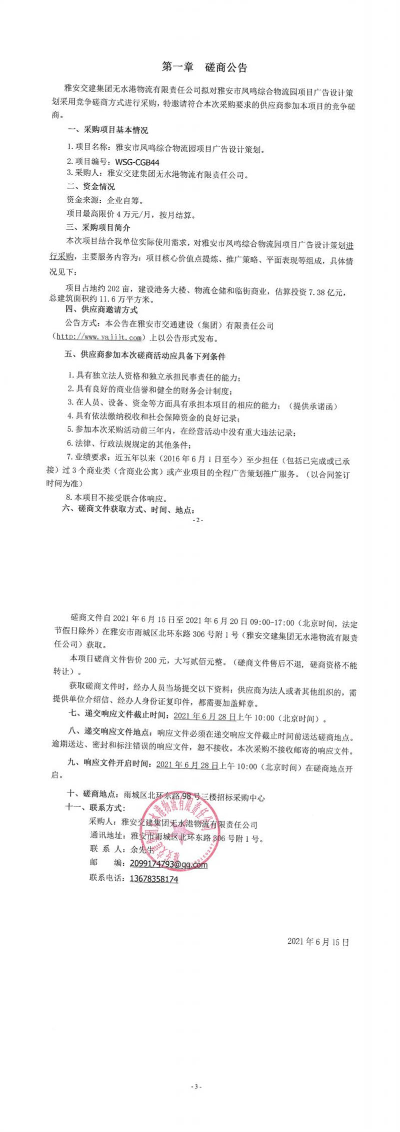 米兰体育-米兰(中国)官网 无水港物流有限责任公司雅安市凤鸣综合物流园项目广告设计策划磋商公告