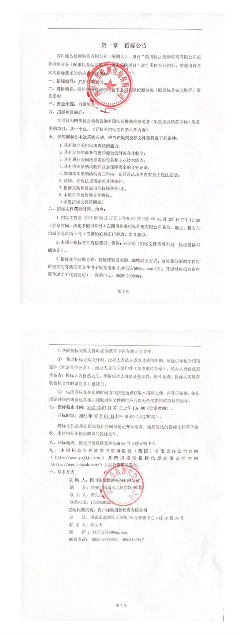 四川佳岳检测咨询有限公司桩基检测劳务(配重块及钻芯取样)服务采购招标公告