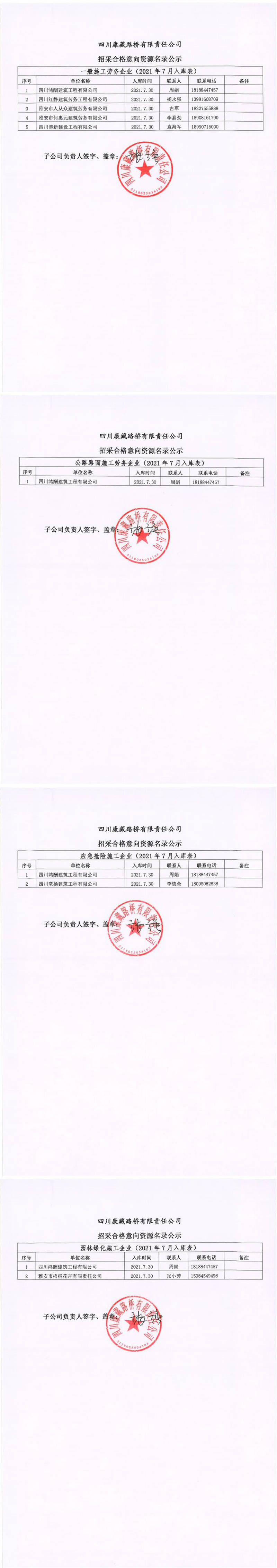 四川康藏路桥有限责任公司招采合格意向资源名录公示