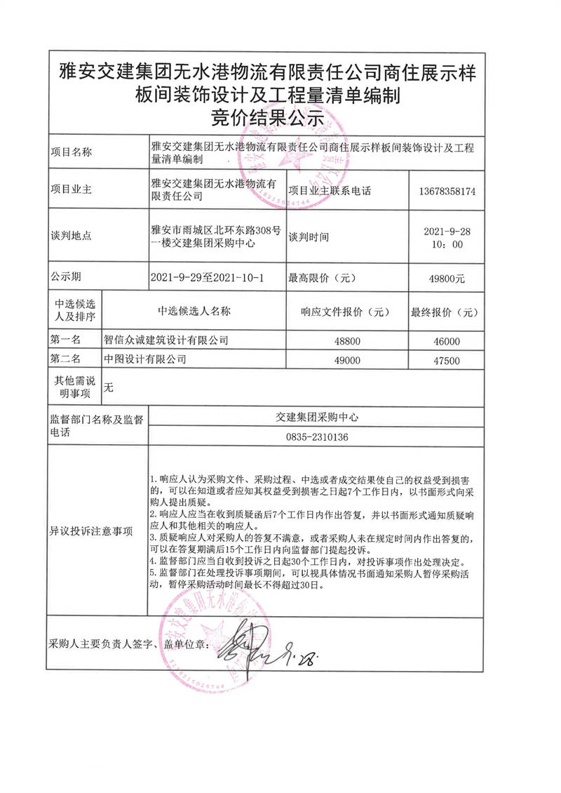 米兰体育-米兰(中国)官网 无水港物流有限责任公司商住展示样板间装饰设计及工程量清单编制竞价结果公示
