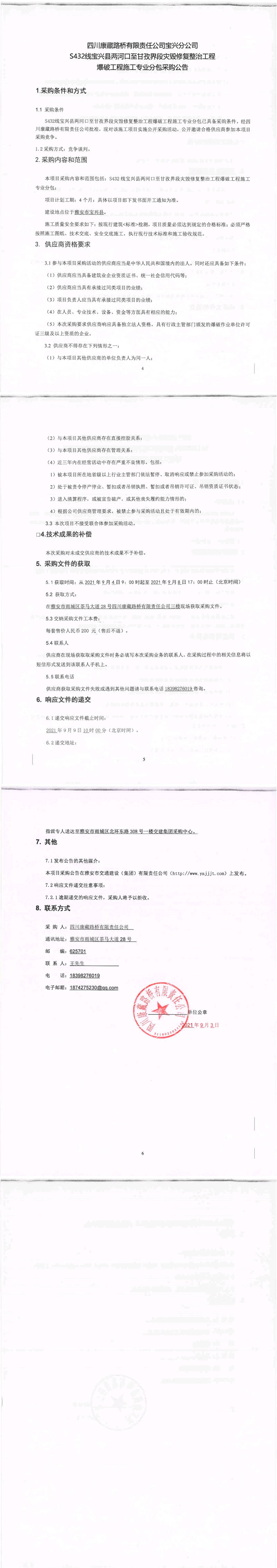 四川康藏路桥有限责任公司宝兴分公司s432线宝兴县两河口至甘孜界段灾毁修复整治工程爆破工程施工专业分包采购公告