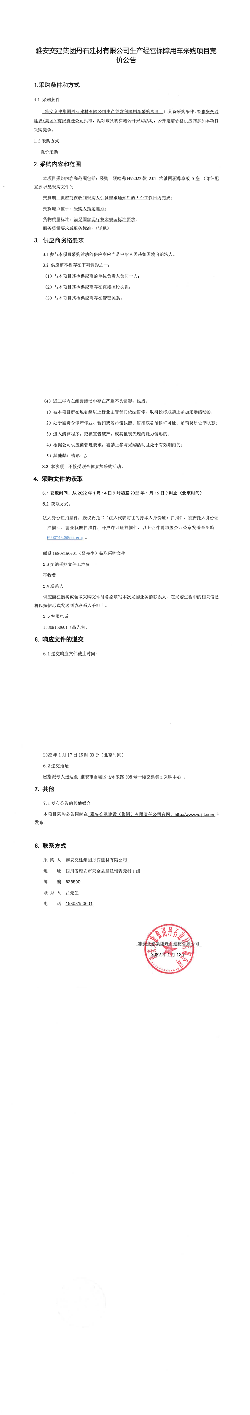 米兰体育-米兰(中国)官网 丹石建材有限公司生产经营保障用车采购项目竞价公告