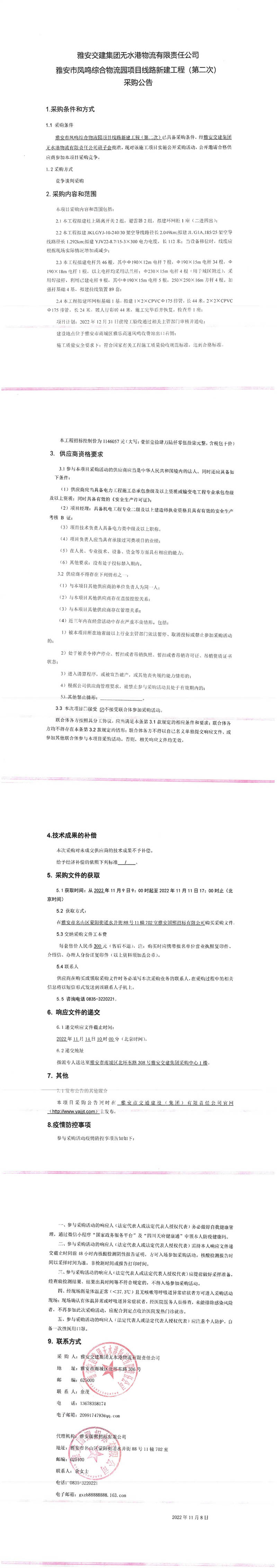 米兰体育-米兰(中国)官网 无水港物流有限责任公司雅安市凤鸣综合物流园项目线路新建工程(第二次)采购公告