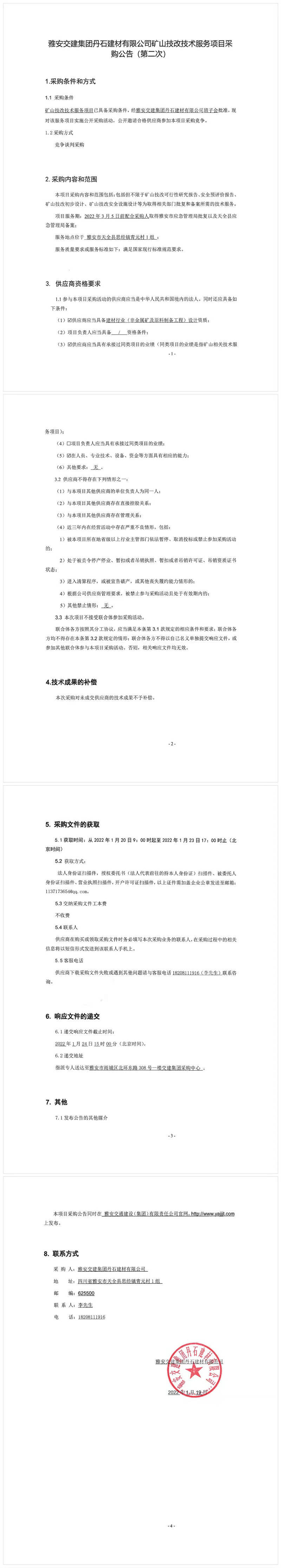 米兰体育-米兰(中国)官网 丹石建材有限公司矿山技改技术服务项目采购公告(第二次)
