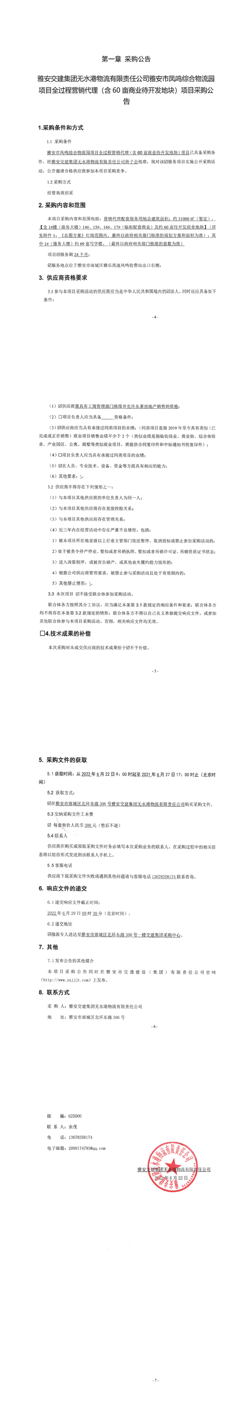 米兰体育-米兰(中国)官网 无水港物流有限责任公司雅安市凤鸣综合物流园项目全过程营销代理(含60亩商业待开发地块)项目采购公告