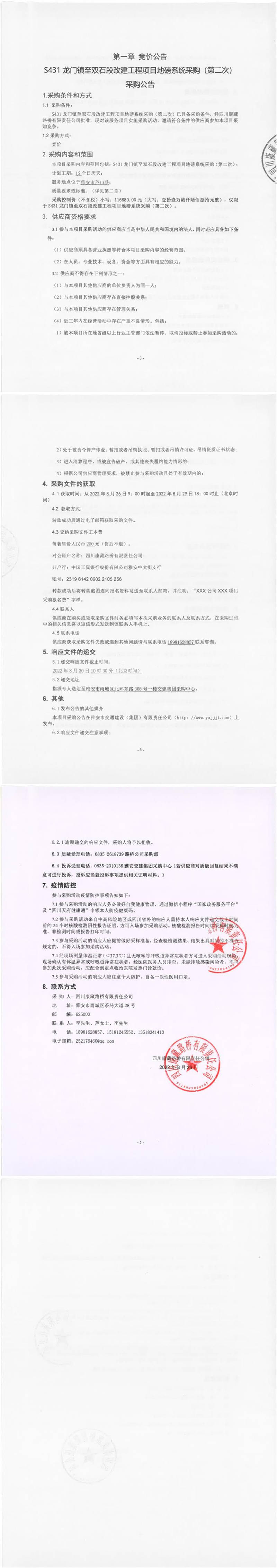 四川康藏路桥有限责任公司S431龙门镇至双石段改建工程项目地磅系统采购(第二次)采购公告