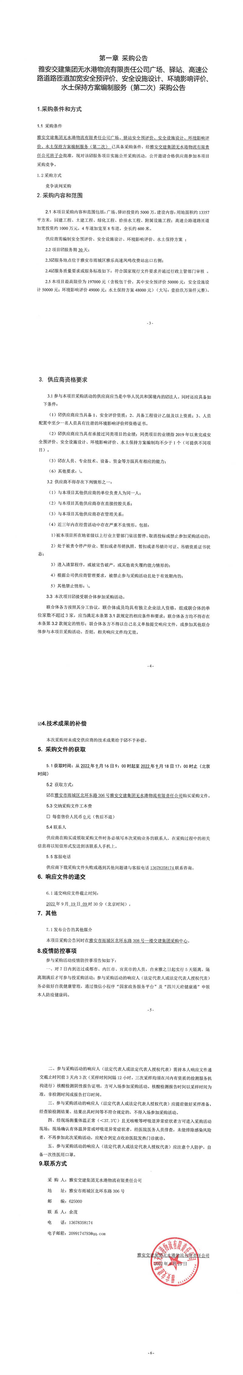 米兰体育-米兰(中国)官网 无水港物流有限责任公司广场、驿站、高速公路道路匝道加宽安全预评价、安全设施设计、环境影响评价、水土保持方案编制服务(第二次)采购公告