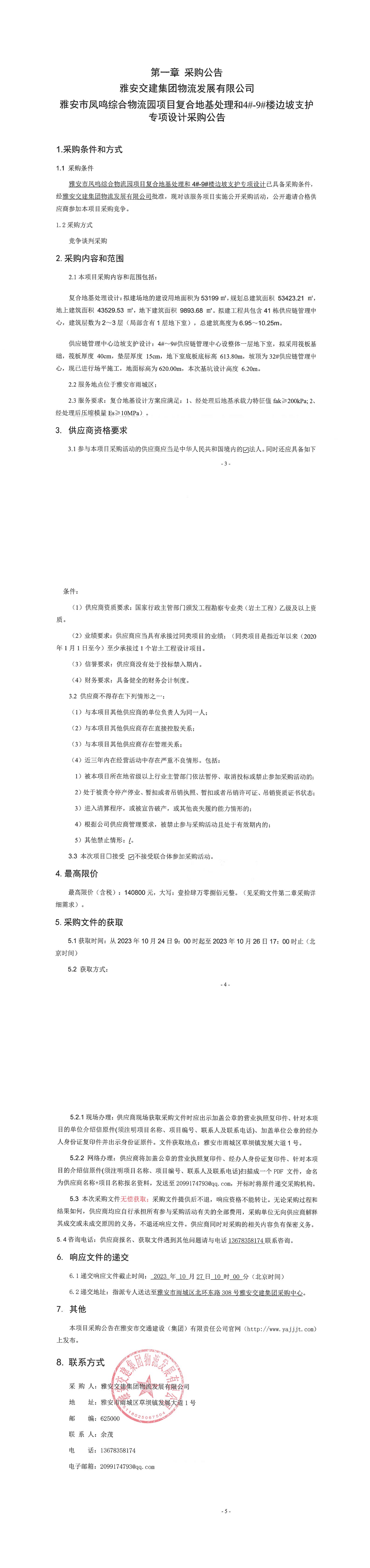 米兰体育-米兰(中国)官网 物流发展有限公司雅安市凤鸣综合物流园项目复合地基处理和4#-9#楼边坡支护专项设计采购公告