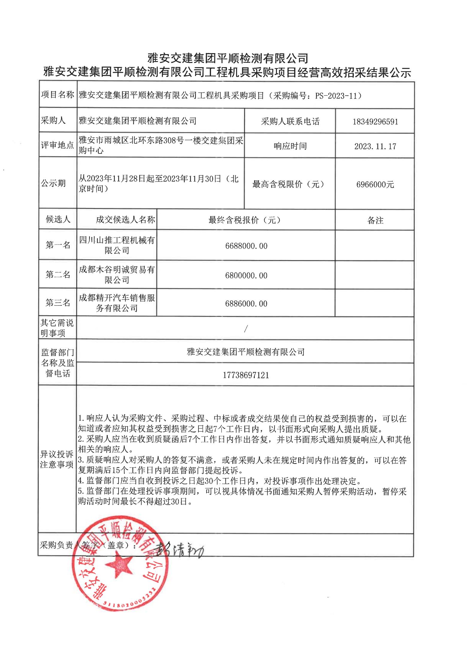 米兰体育-米兰(中国)官网 平顺检测有限公司工程机具采购项目经营高效招采结果公示