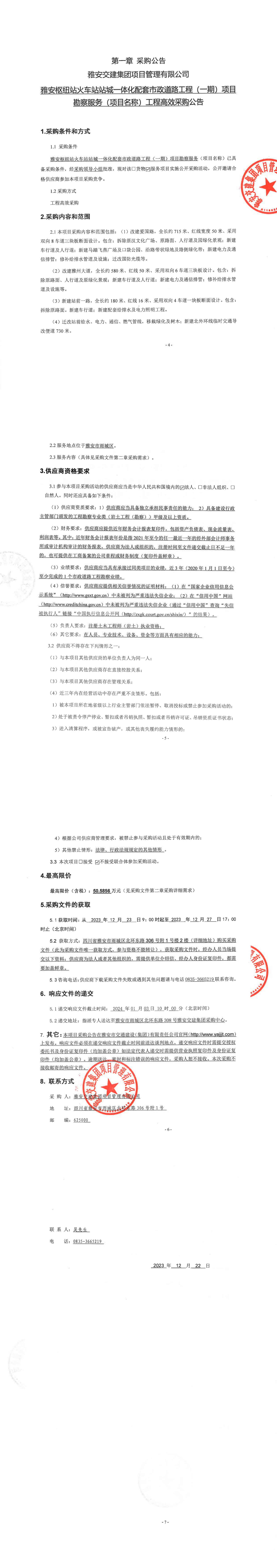 米兰体育-米兰(中国)官网 项目管理有限公司雅安枢纽站火车站站城一体化配套市政道路工程(一期)项目勘察服务(项目名称)工程高效采购公告
