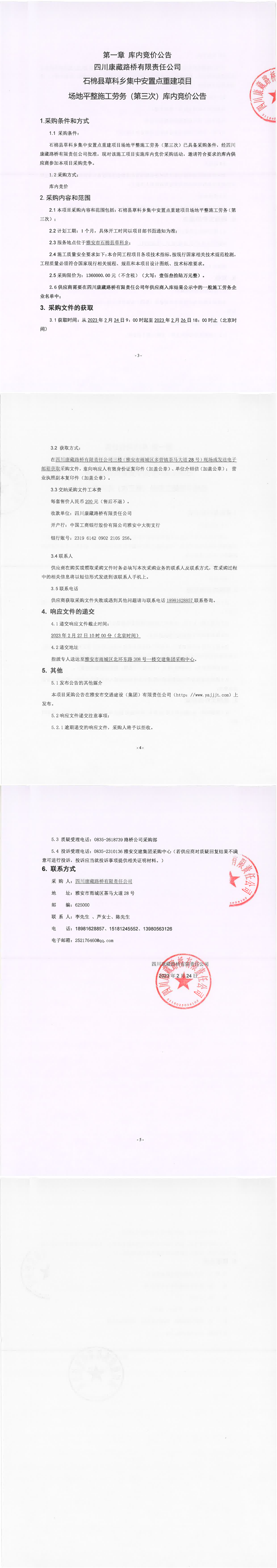 四川康藏路桥有限责任公司石棉县草科乡集中安置点重建项目场地平整施工劳务(第三次)库内竞价