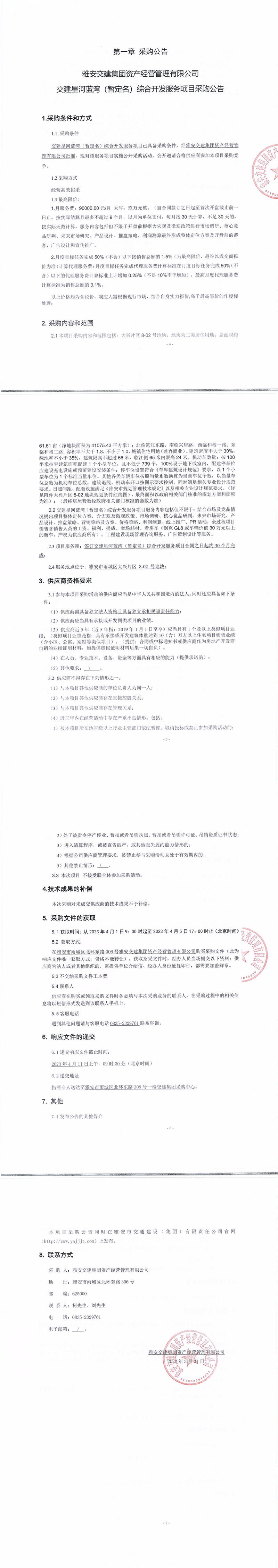 米兰体育-米兰(中国)官网 资产经营管理有限公司交建星河蓝湾(暂定名)综合开发服务项目采购公告