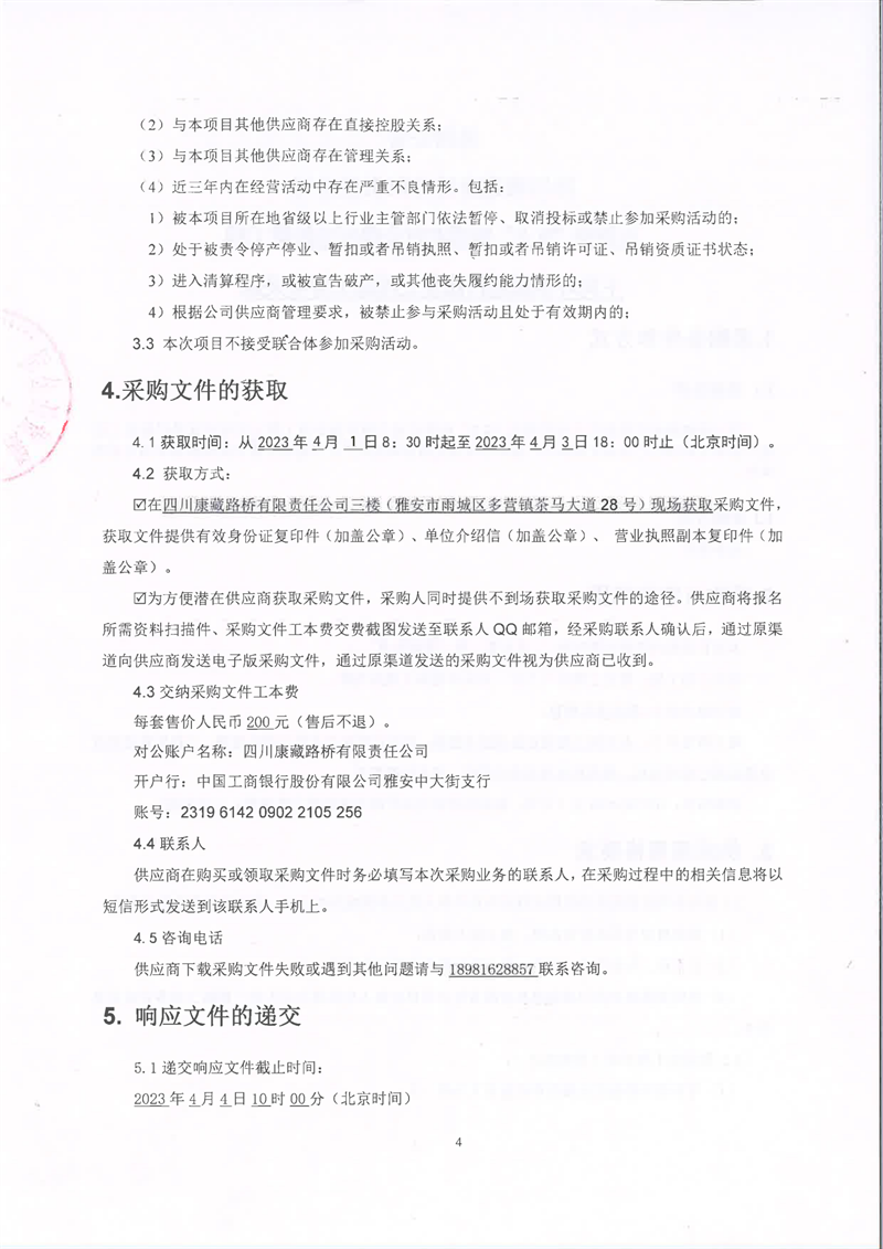 四川康藏路桥有限责任公司省道104雨城区坪石至回龙(洪雅界)段改建工程项目支座及伸缩缝采购结果公示